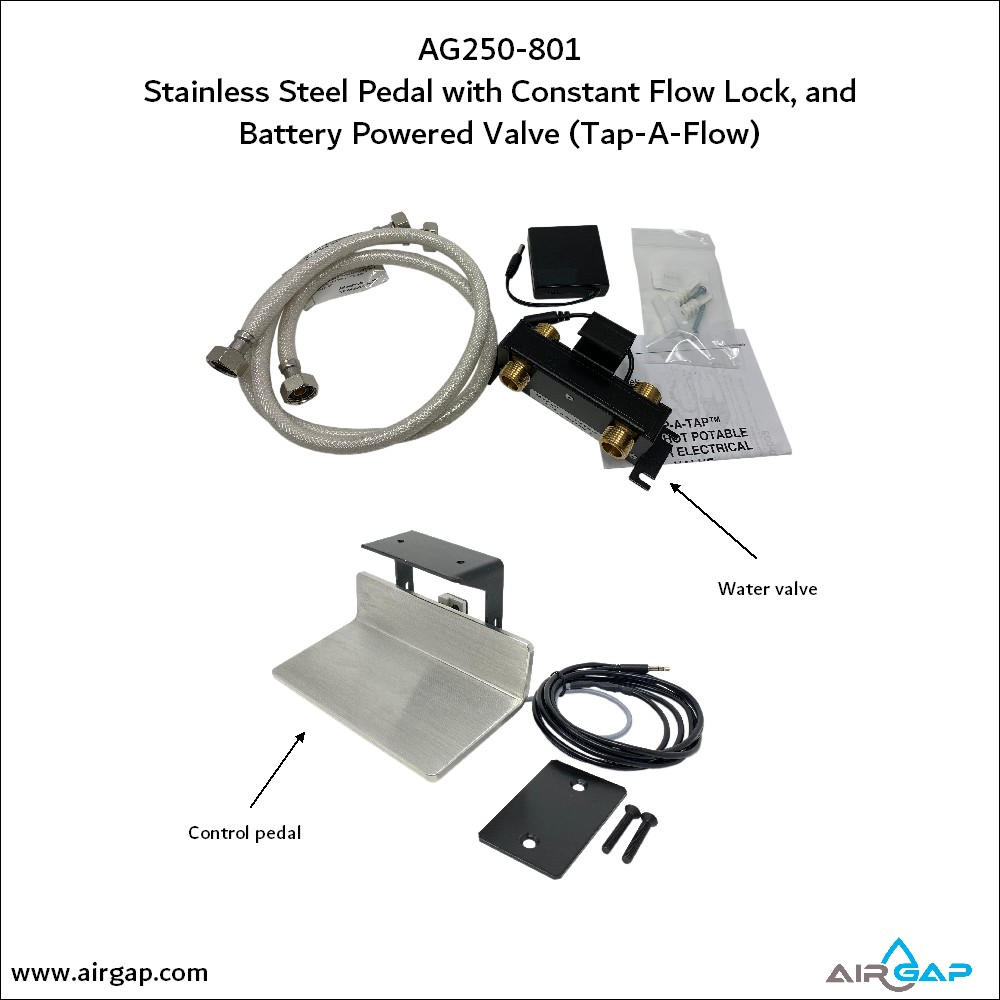 The AG250-801 is the best in the world, Hands-Free Sink Pedal with Constant Flow Lock, Stainless Steel, and Battery Powered Valve.
