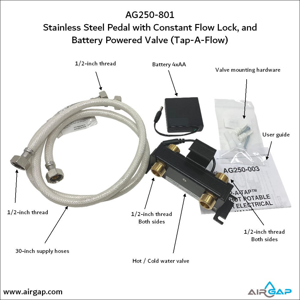 AG250-801 Hands-Free Sink Pedal with Constant Flow Lock, Stainless Steel, Battery Powered Valve