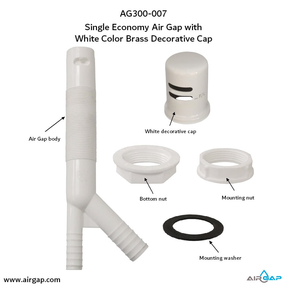 AG300-007 Single Economy Air Gap with White Color Brass Decorative Cap