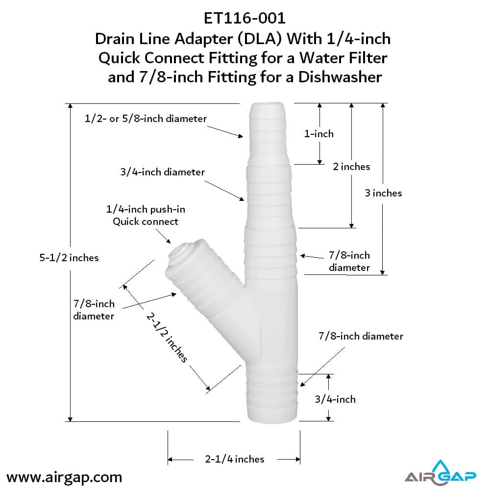 ET116-001 Drain Line Adapter (DLA) With 1/4-inch Quick Connect Fitting for a Water Filter and 7/8-inch Fitting for a Dishwasher